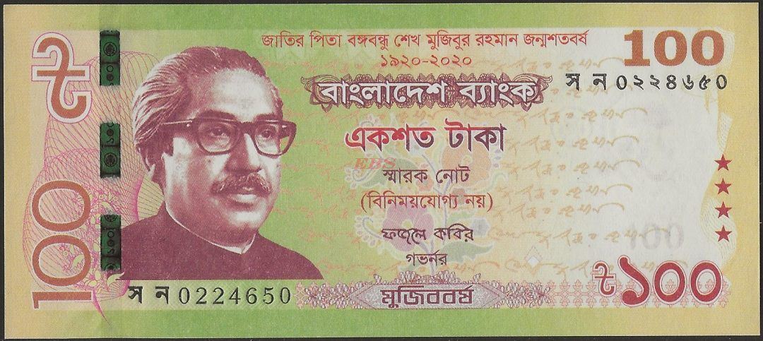 Wmk : Sheikh Mujibur Rahman on pixelated background and electrotype bank logo and 100