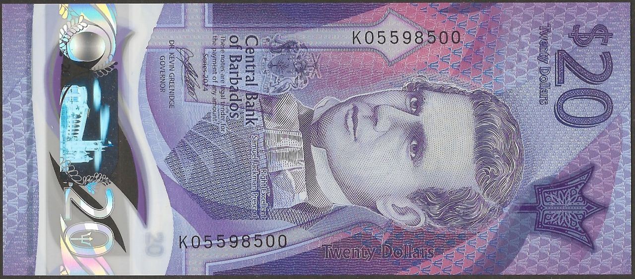 F : English text; coat of arms; Samuel Jackman Prescod; trident.
