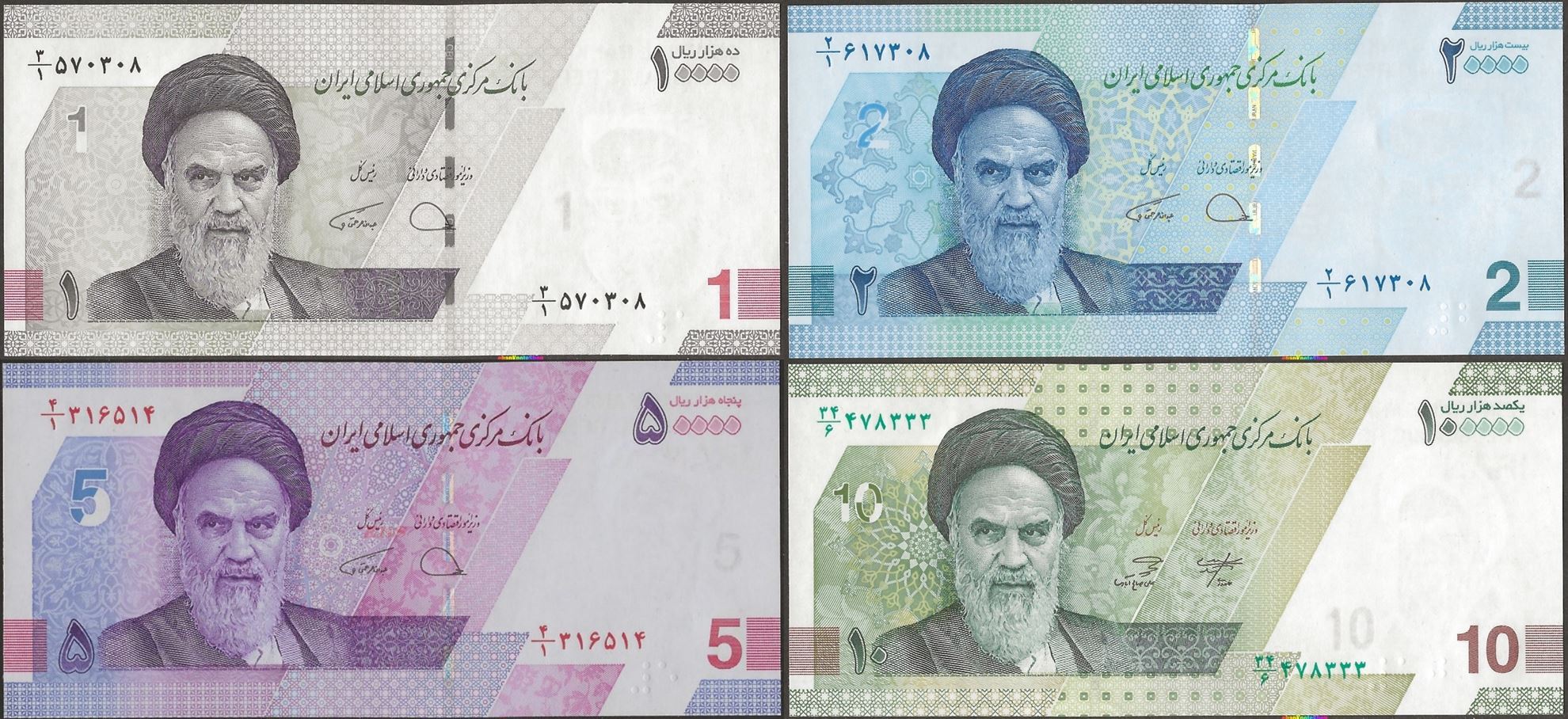 10 000 Rials - 100 000 Rials / 1 Toman - 10 Toman