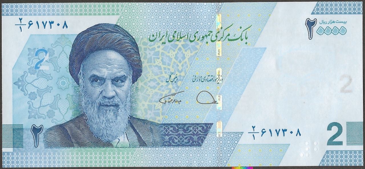F: Farsi text; denomination as puzzle number registration device; Ayatollah Ruhollah Khomeini.