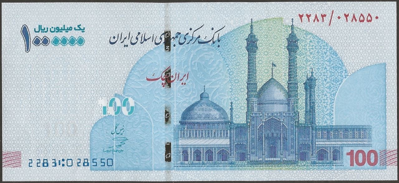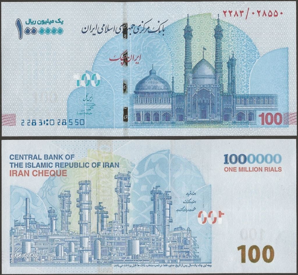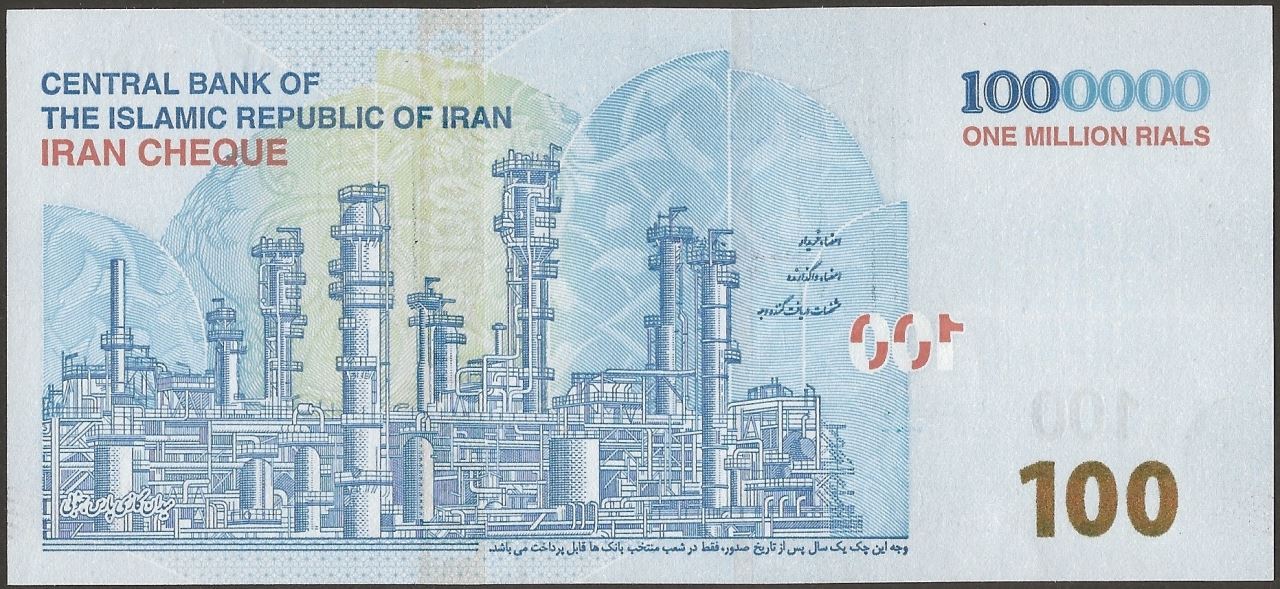 B: English and Farsi text; unknown oil refinery; denomination as puzzle number;