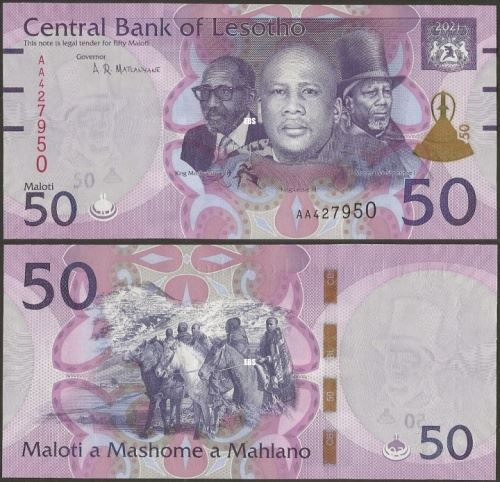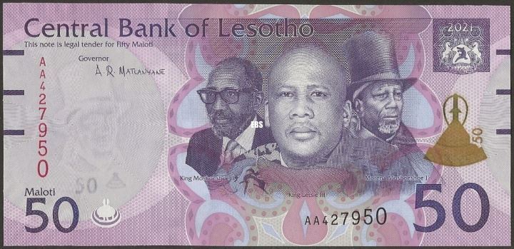 Wmk :King Moshoeshoe I in top hat, electrotype 50 with Basotho hat, and Cornerstones.