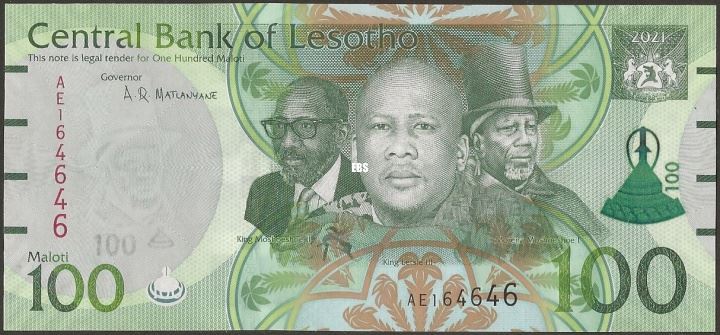 Wmk :King Moshoeshoe I in top hat, electrotype 100 with Basotho hat, and Cornerstones.