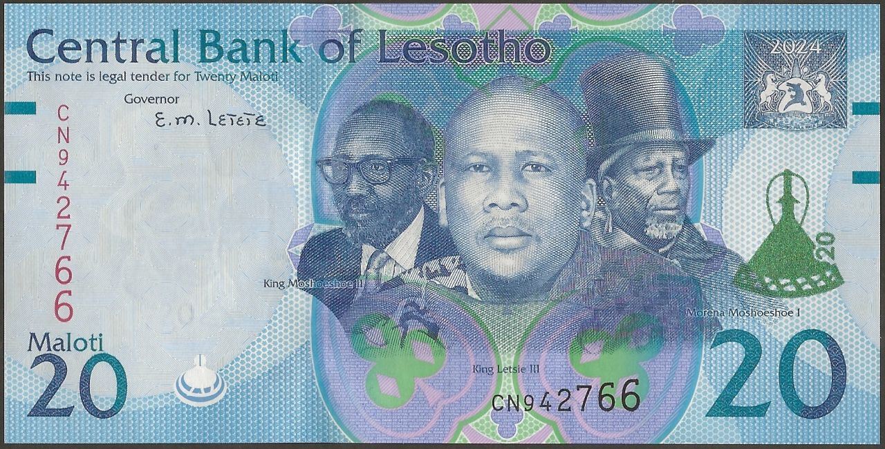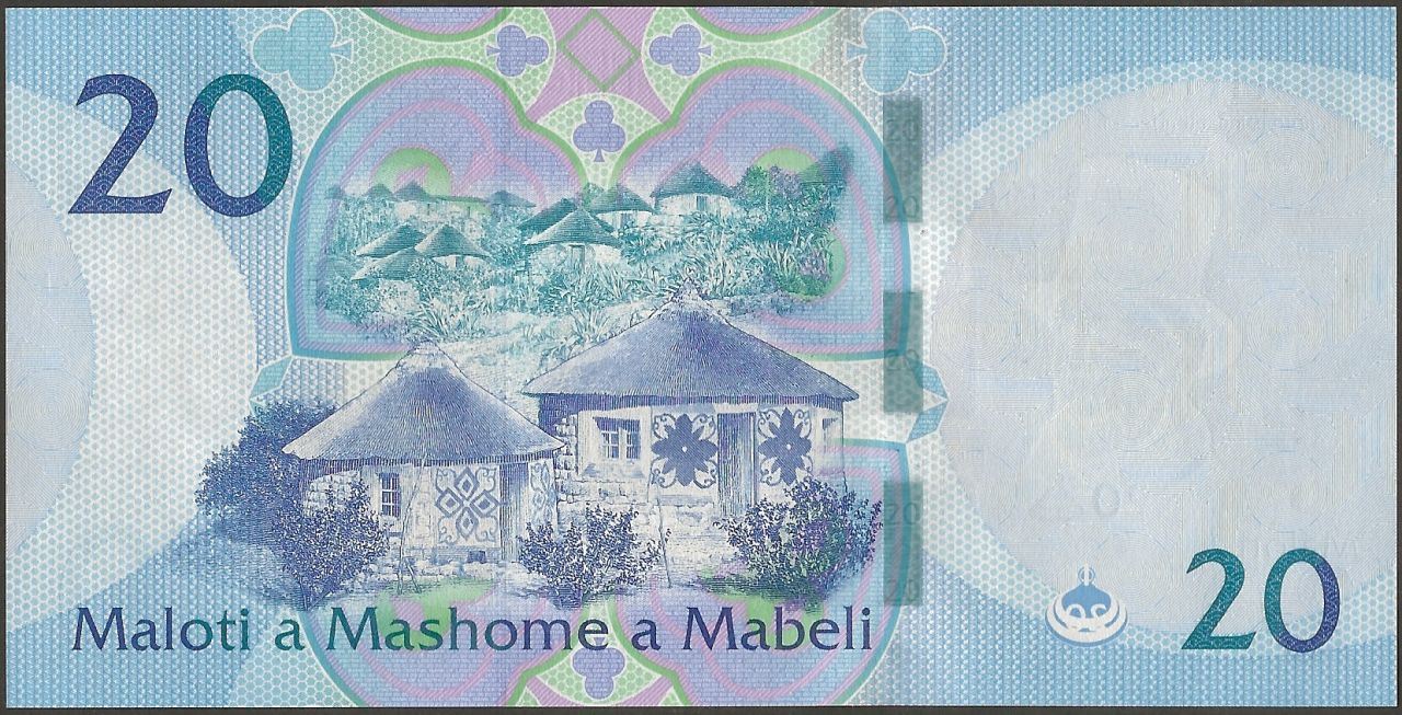 Wmk : King Moshoeshoe I in top hat, electrotype 20 with Basotho hat, and Cornerstones.