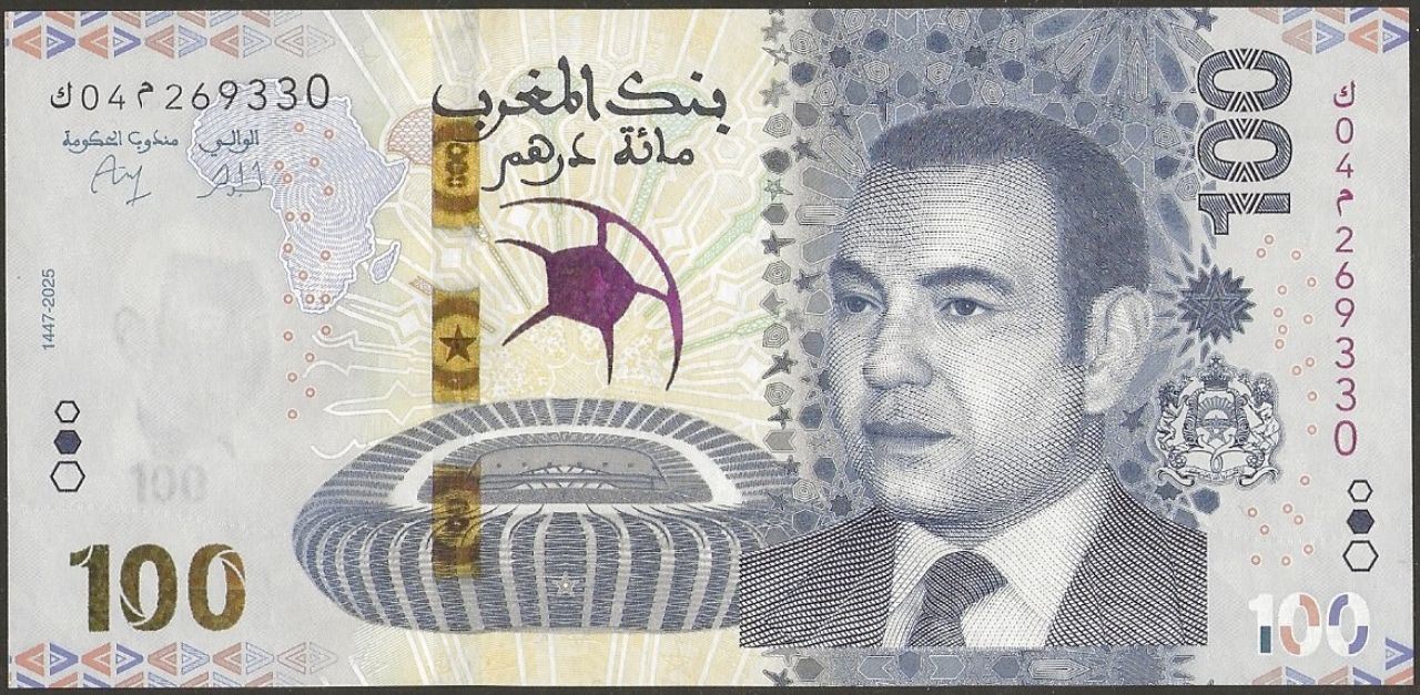 King Mohamed VI; Moroccan coat of arms; denomination as registration device; three hexagons
