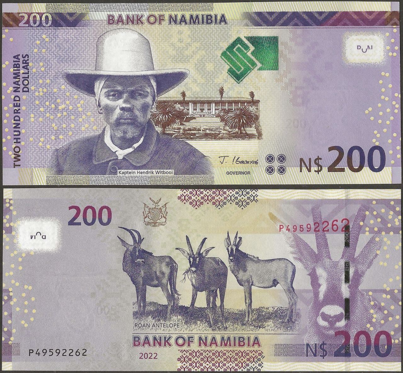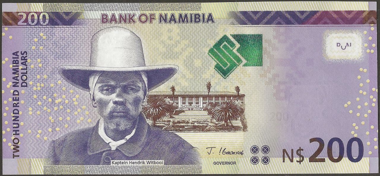 F : English text; Kaptein Hendrik Witbooi; Parliament building in Windhoek;