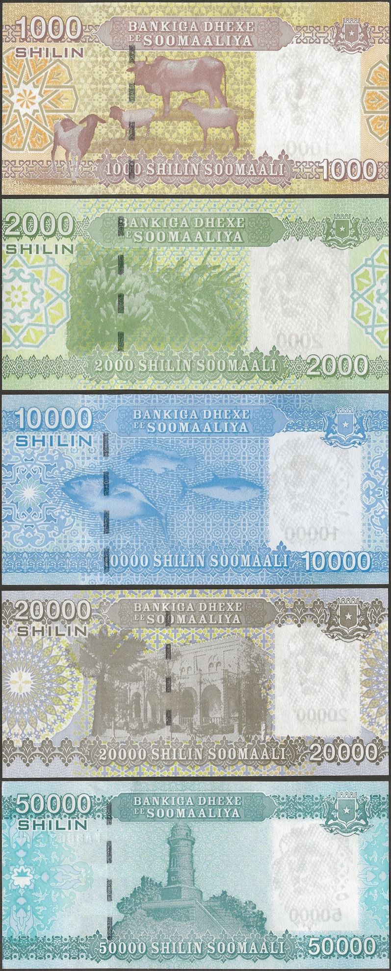 Somalia,5 NOTE SET,1000 to 50000 Shillin,2023