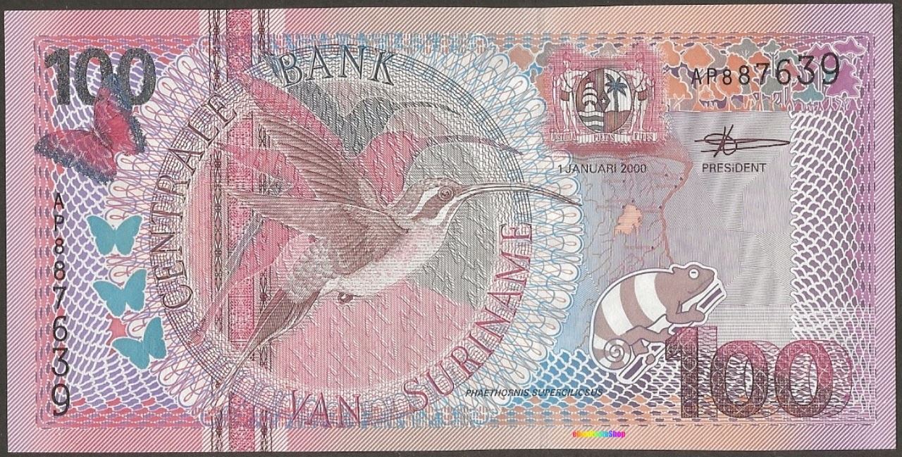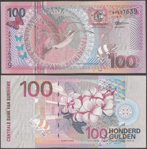 Suriname,P149,B534a,100 Gulden,2000