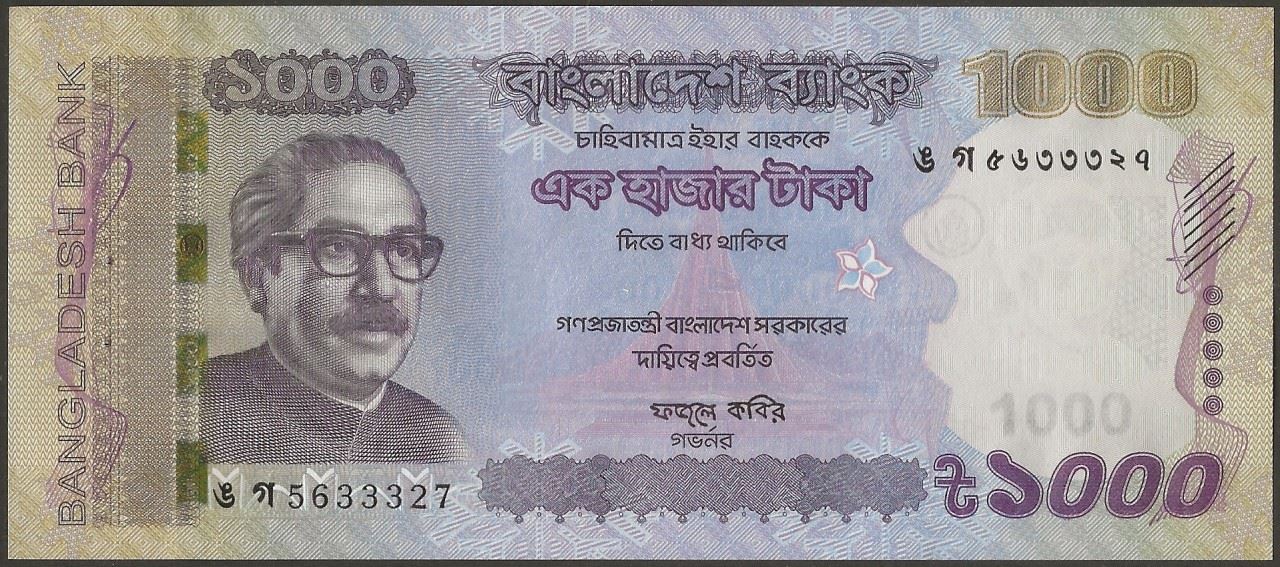 Sg 11, Wmk :Sheikh Mujibur Rahman on pixelated background and electrotype bank logo and 1000