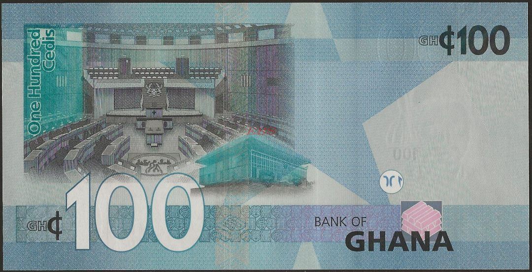 Wmk :Tetteh Quarshie, cocoa pod, electrotype 100, and Cornerstones.