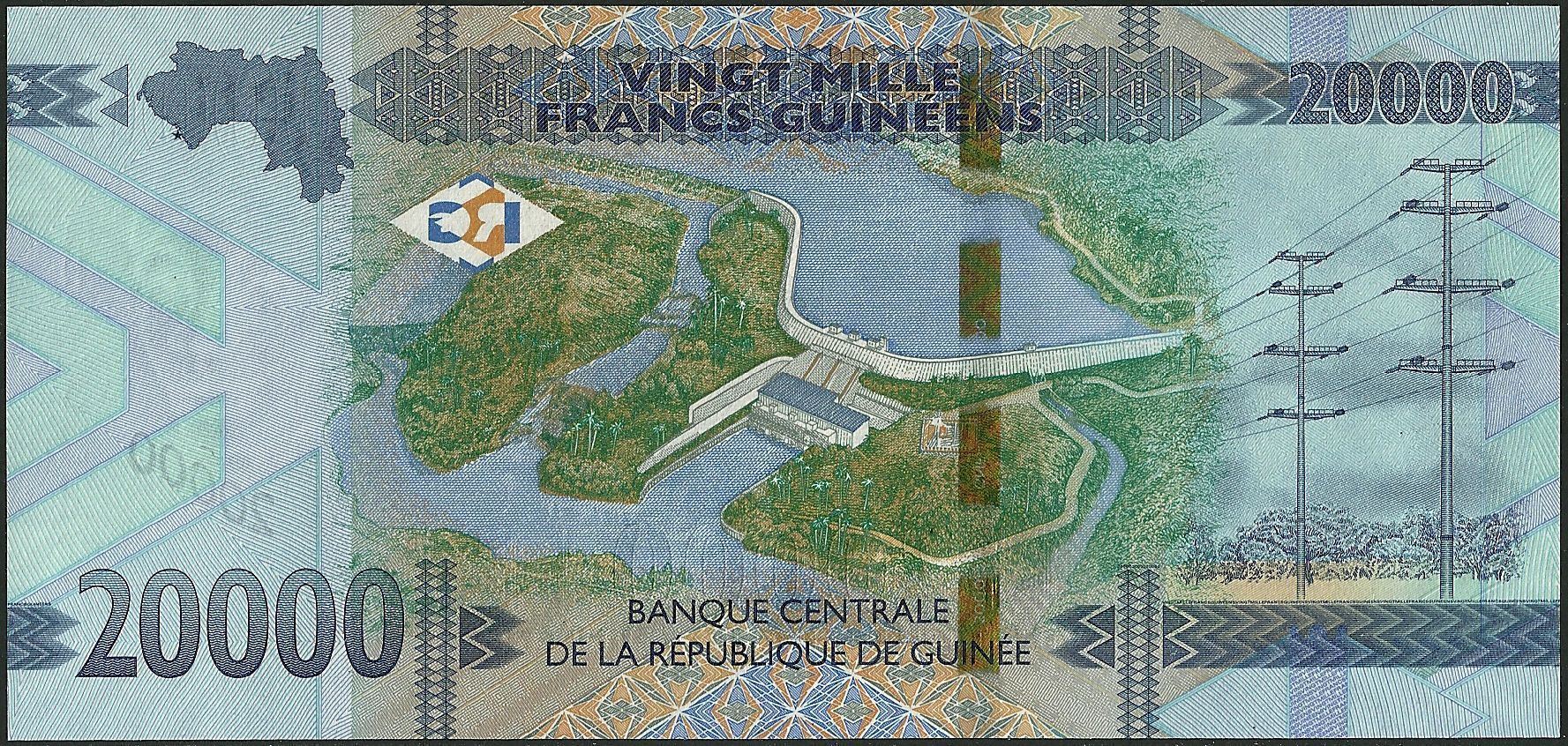 B: Guinea map , Hydroelectric dam in Kaleta, Electricity transmission towers