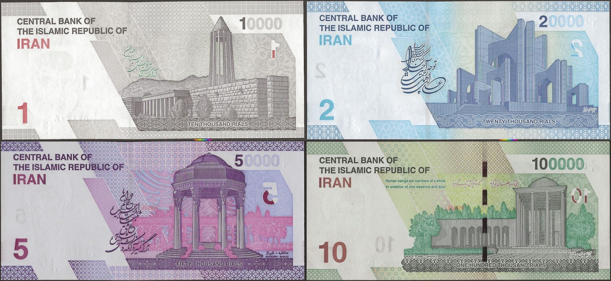 10 000 Rials - 100 000 Rials / 1 Toman - 10 Toman