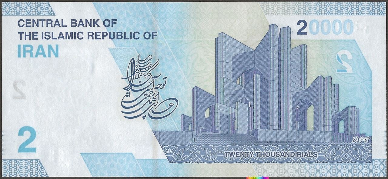 B: English and Farsi text; Mausoleum of Poets in Tabriz; denomination as puzzle number