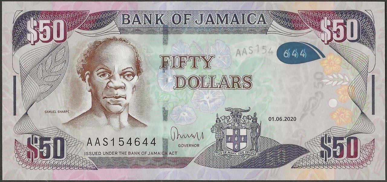 Wmk : Sam Sharpe with electrotype 50 and parrot ,