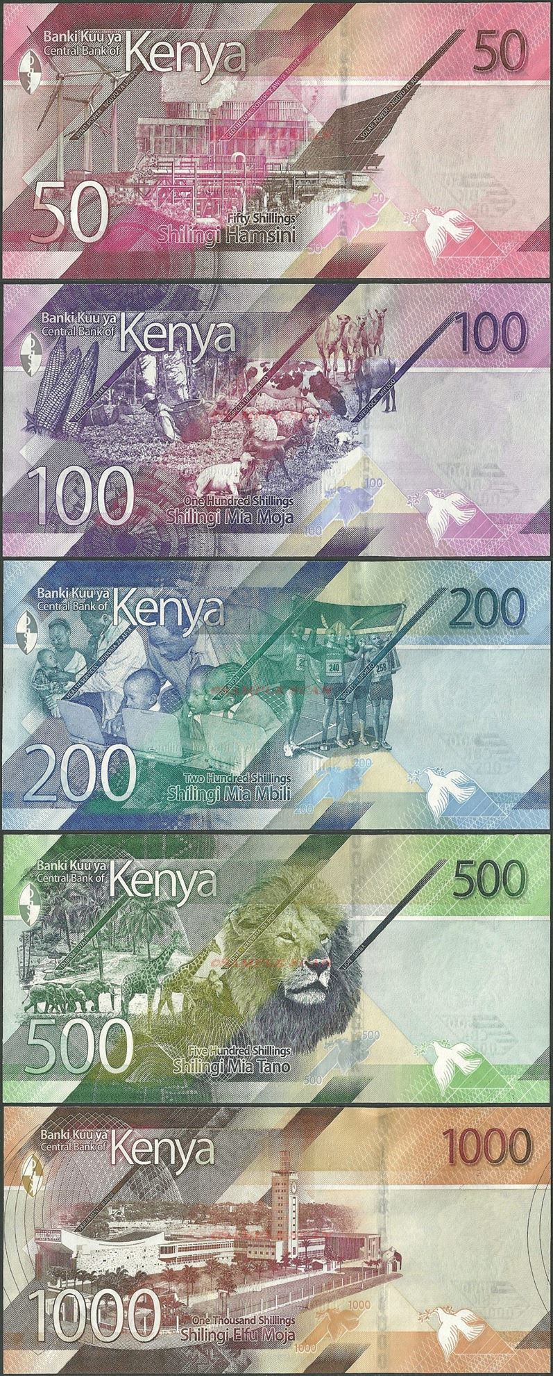 50 Shillings , 100 Shillings ,200 Shillings , 500 Shillings ,1000 Shillings