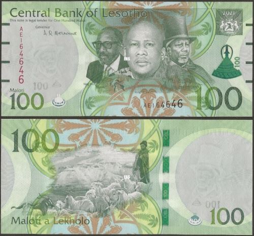 Wmk :King Moshoeshoe I in top hat, electrotype 100 with Basotho hat, and Cornerstones.