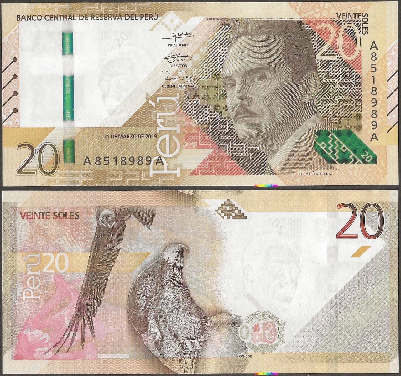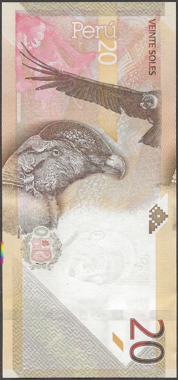 B : Spanish text; Andean condor; coat of arms; Cantuta flower. .