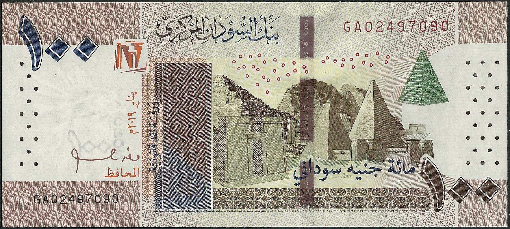 Wmk : Secretary bird and electrotype CBOS / 100