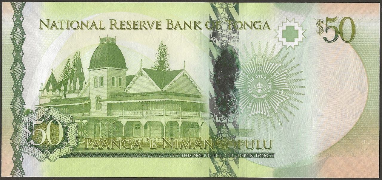 F: English and Tongan text; King Tupou VI; Tongan coat of arms.
