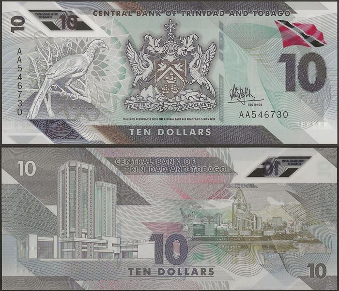 Simulated windowed security thread with demetalized TRINIDAD AND TOBAGO / TEN.