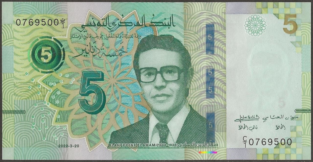 F: Arabic text; denomination in circular green-to-blue SPARK Live; agronomist Slaheddine el Amami.